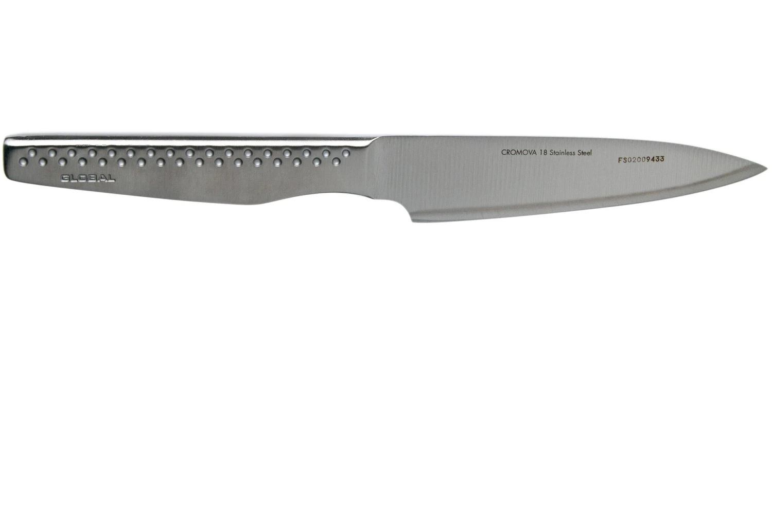 Le couteau d’office Global Ni GNFS-02 est le plus petit couteau de la gamme Global Ni. GNFS est l’abréviation de Global Ni Forged Small. Avec 11 cm de long, la lame est relativement petite mais très facile à manier. Ce couteau d’office est parfait pour éplucher les légumes et faire des petites coupes comme les oignons, les garnitures etc.