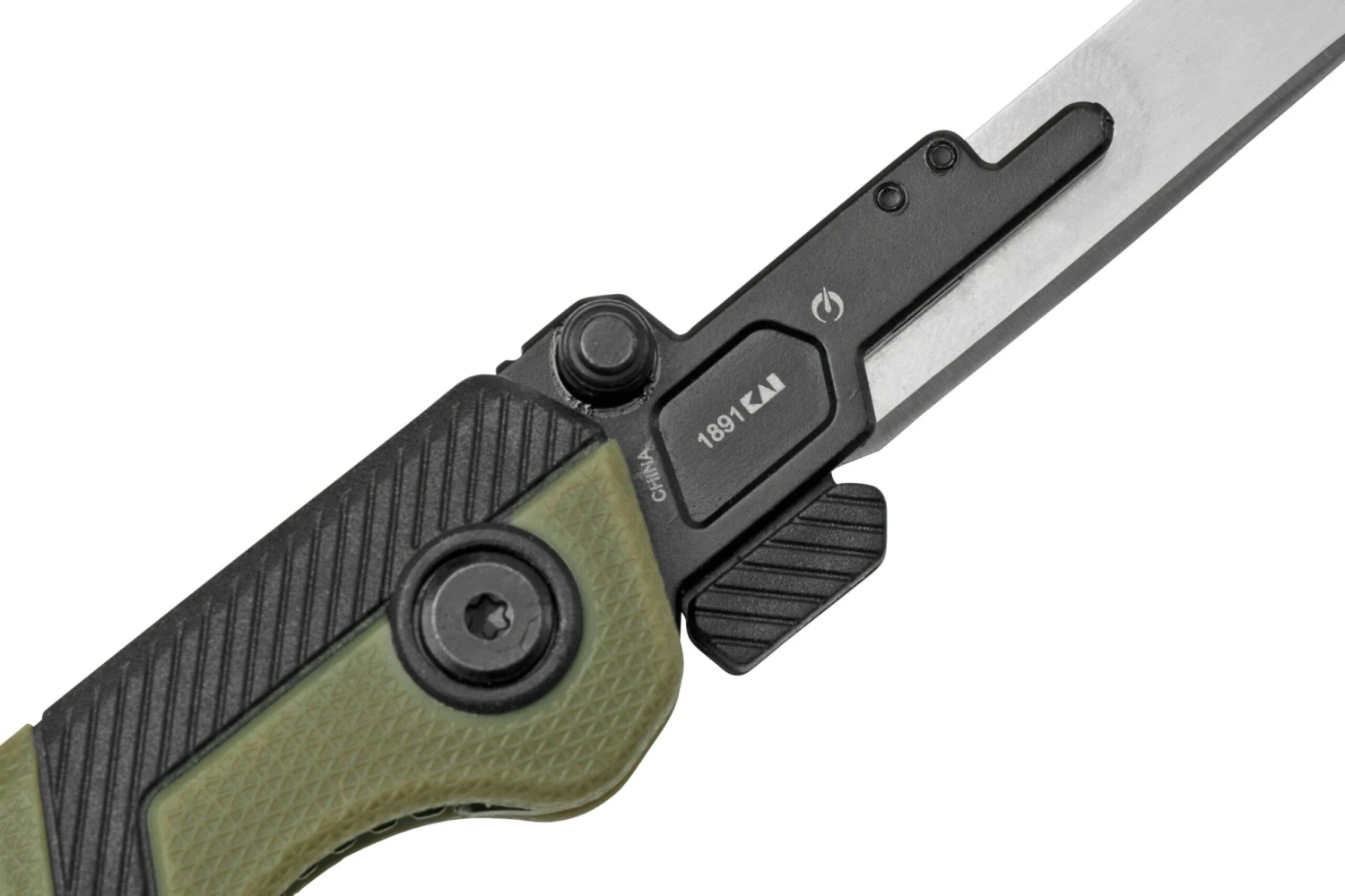 Le Kershaw Lonerock RBK 2 1891 est un couteau de poche unique, conçu spécialement pour la chasse. Vous ouvrez la lame avec le repose-pouce. Une fois ouverte, la lame est bloquée par un linerlock. Le manche est en FRN avec une fine couche de caoutchouc. Cela offre une excellente prise en main. Ce qui rend ce couteau si unique, c’est que l’on peut remplacer sa lame. Vous n’aurez jamais besoin de l’aiguiser ! Si elle vient à s’émousser, il suffit de la remplacer par une lame neuve rangée dans le fourreau inclus. En plus de la lame qui est montée sur le couteau, vous trouverez dans le fourreau pas moins de 14 autres lames de rechange. De quoi toujours avoir un couteau bien aiguisé ! Le Kershaw Lonerock RBK 2 est également livré avec un manche de rechange. Ce manche fin est spécialement conçu pour votre compagnon de chasse. Vous pourrez ainsi préparer le gibier ensemble.